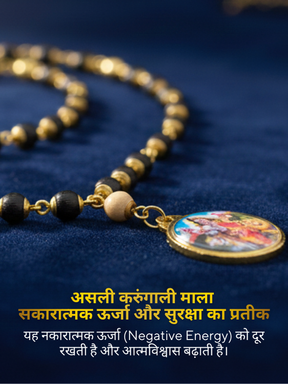 Certified Karungali Mala with Lord Murugan Pendant | Protection, Health & Success