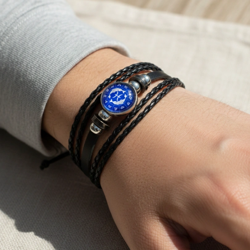 Aries Zodiac Leather Bracelet with Silver Charm & Spiritual Elegance