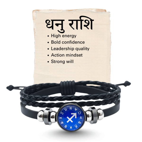 The Sagittarius Zodiac Leather Bracelet is inspired by Jupiter (Guru), the planet of wisdom, luck, and spiritual growth, and is spiritually associated with Lord Vishnu. Sagittarius energy represents optimism, adventure, honesty, and a quest for knowledge and purpose.