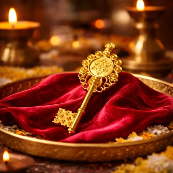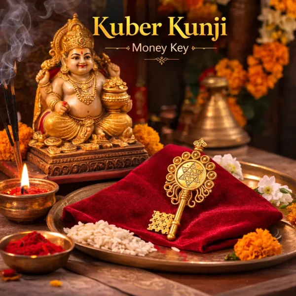 The Shree Kuber Kunji Money Key is considered a sacred symbol associated with Lord Kuber, the Hindu deity of wealth and prosperity. According to traditional beliefs, placing this auspicious key in your home temple, locker, or workplace may help attract prosperity, financial growth, and positive energy. This spiritual key is widely used during pooja rituals, Diwali, Dhanteras, and wealth-related prayers, making it a meaningful spiritual item for homes and businesses.